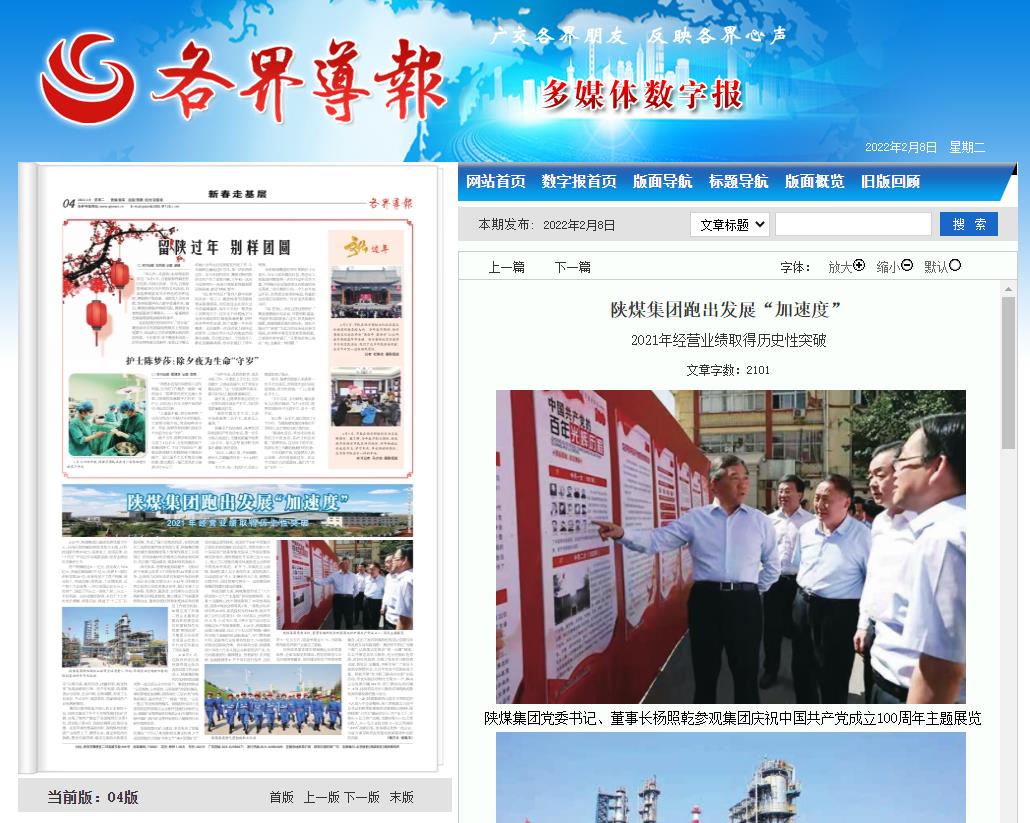 2021年,陜煤集團以提高發(fā)展質量為中心,以深化供給側結構性改革為主線,以科技創(chuàng)新為根本動力,迎難而上、攻堅克難,在“十四五”開局之年實現新突破,經營業(yè)績創(chuàng)歷史最好水平。